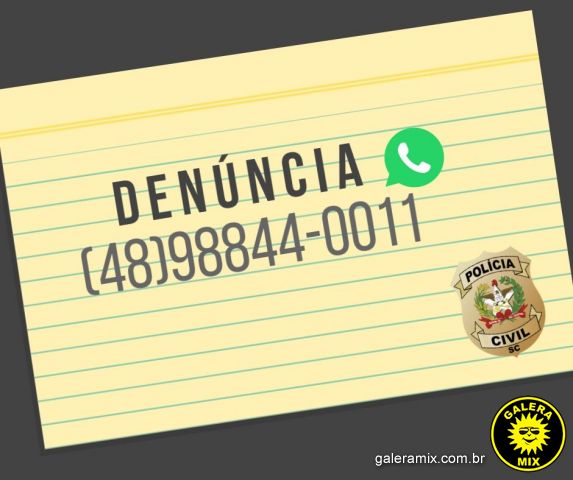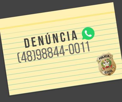 Agora você pode denunciar enviando mensagens com fotos, vídeos e documentos para auxílio de investigações criminais: através do telefone (48) 98844-0011. O serviço está disponível para receber denúncia de forma fácil e ágil, com a garantia de sigilo absoluto.