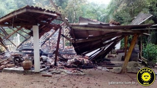 Um incêndio deixou uma residência totalmente destruída durante a madrugada desta segunda-feira (12), na comunidade do Macaco Branco no bairro Arataca em São João Batista.