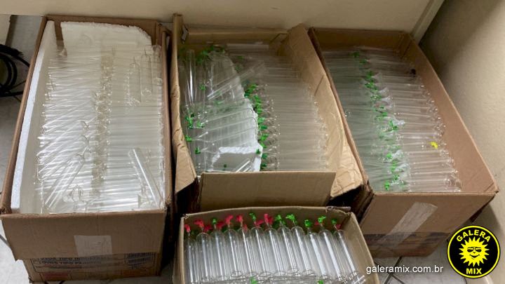 No local, os policiais encontraram 197 frascos da substância conhecida como “lança-perfume”, além de materiais para fabricar e armazenar a droga.