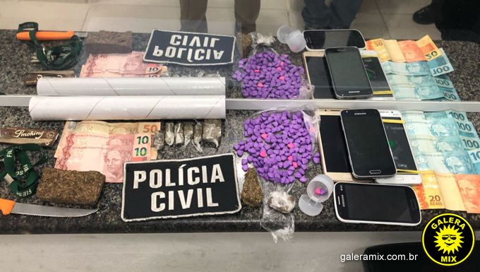 Com um deles foi apreendido R$ 900 em dinheiro e 170 comprimidos de ecstasy. Na residência dos presos ainda foi encontrada certa quantidade de maconha mais alguns comprimidos de ecstasy.