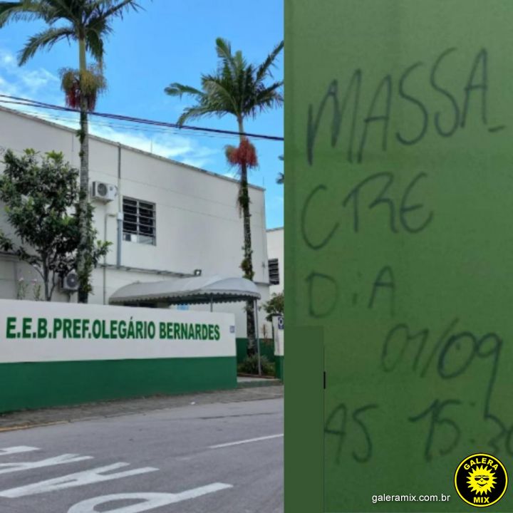 Uma frase com ameaça de massacre em escola de Itapema foi encontrada na porta do banheiro da Escola Olegário Bernardes, no Centro da cidade, e circula nas redes sociais desde o fim de semana. O texto dizia: “Massacre Dia 01/09 às 15h30”, ou seja, na tarde desta segunda-feira (1º).