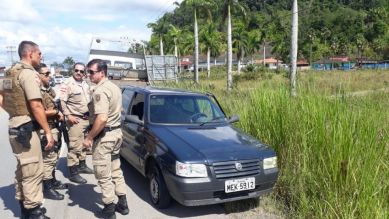 De acordo com informações, durante rondas as Guarnições de Nova Trento localizaram um veículo Fiat/Uno com placas de Palmas/SC, suspeito de estar sendo utilizado em furtos pela região. Ao perceber a aproximação da PM o motorista teria empreendido fuga em alta velocidade.