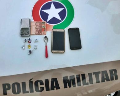 Relatou ainda que durante a semana fazia a comercialização de drogas durante a noite e nos finais de semana atendia o dia inteiro, indagado onde estaria o droga informou que havia escondido atrás de uma cômoda no próprio quarto e a balança de precisão estava na lavanderia dentro do painel da máquina de lavar roupa, ao todo foi encontrado 6 buchas de drogas semelhante a cocaína, uma balança de precisão, um celular preto marca Motorola, um celular dourado marca Samsung, 20 reais trocados.