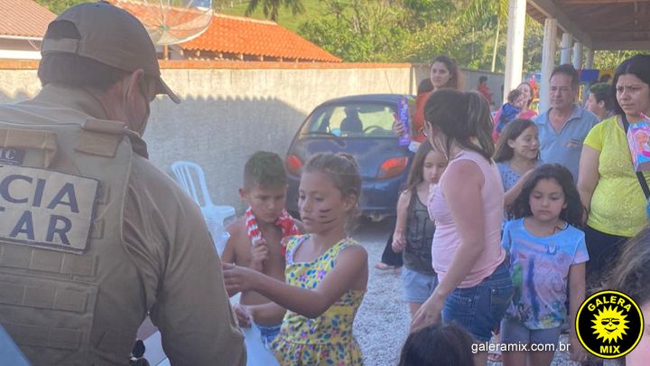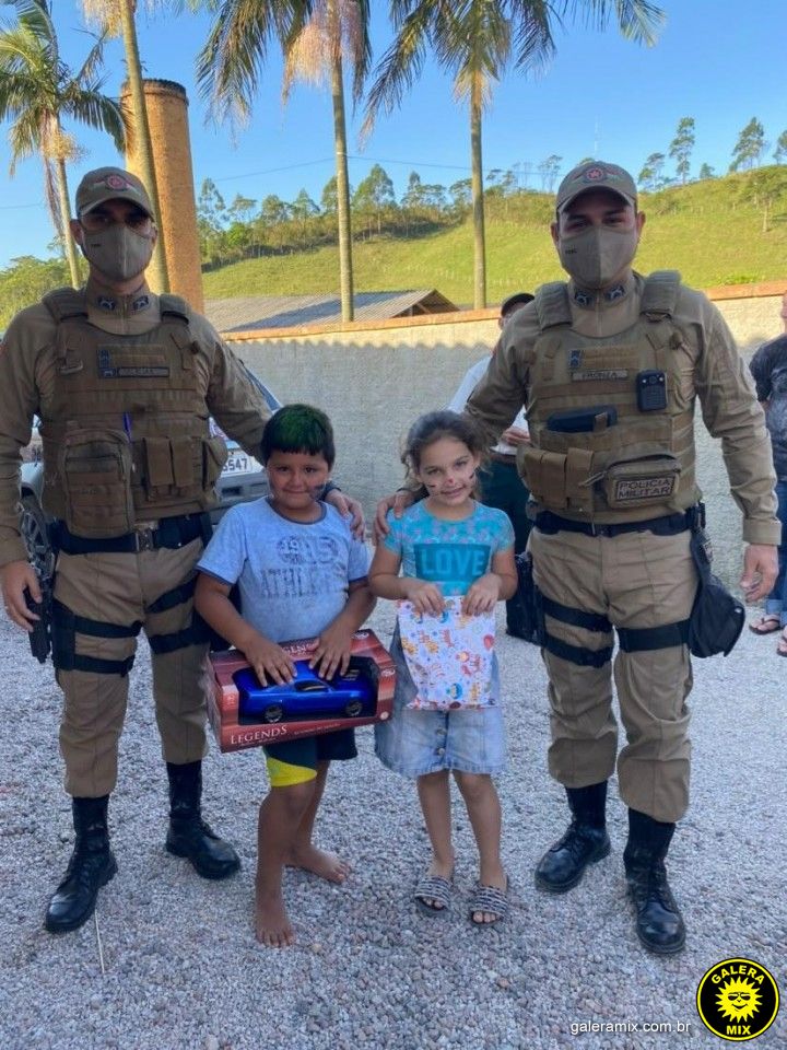 Policiais militares realizaram entrega de presentes para crianças do bairro Galera, na localidade do Cardoso. A ação foi realizadas por membros do grupamento de Canelinha, neste domingo, 11 de outubro.