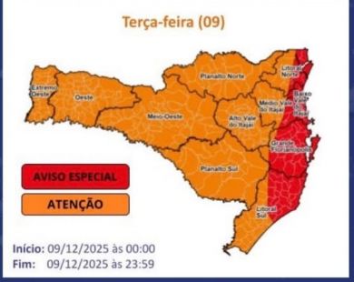 Em Itapema, a Secretaria Municipal de Educação informou que as demais atividades da administração pública seguem normalmente e que novas atualizações serão divulgadas pelos canais oficiais.