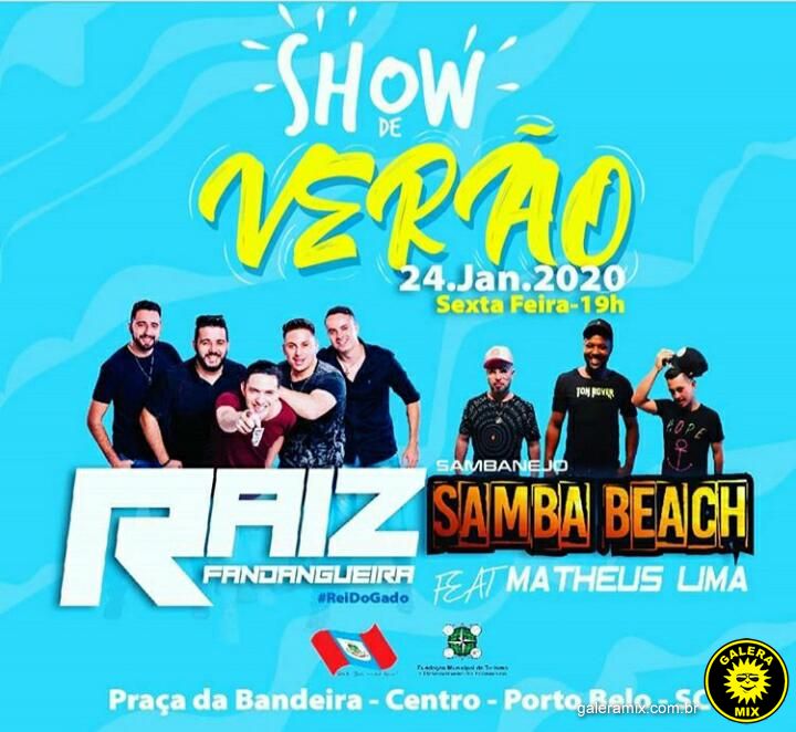 O Governo do Município de Porto Belo através da Fundação de Turismo realiza nesta sexta-feira (24) mais uma edição do Show de Verão, com apresentações musicais na Praça da Bandeira. A festa fica por conta da banda da cidade Raiz Fandangueira e da banda Samba Beach, com participação de Matheus Lima.