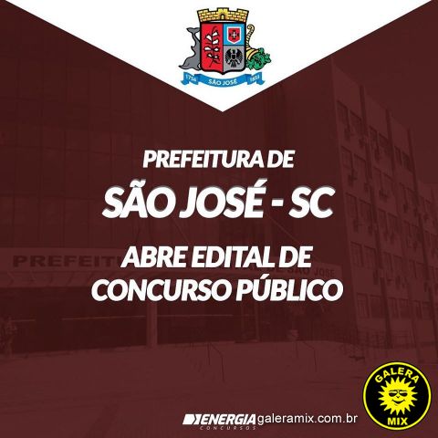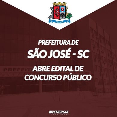 A Prefeitura Municipal de São José e a Secretaria Municipal de Educação tornam pública a abertura das inscrições no período das 12h do dia 3 de fevereiro de 2020 às 16h do dia 4 de março de 2020, do Concurso Público para provimento efetivo e formação de cadastro reserva para o Quadro de Servidores Públicos do Município de São José/SC.