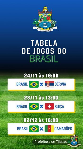 Na estreia da Seleção Brasileira na Copa, no dia 24 de novembro, próxima quinta-feira, em que o jogo inicia às 16h, contra a Sérvia, o expediente nas repartições públicas municipais continuará das 7h às 13h. Em setores com expediente vespertino as atividades serão encerradas às 15h.
