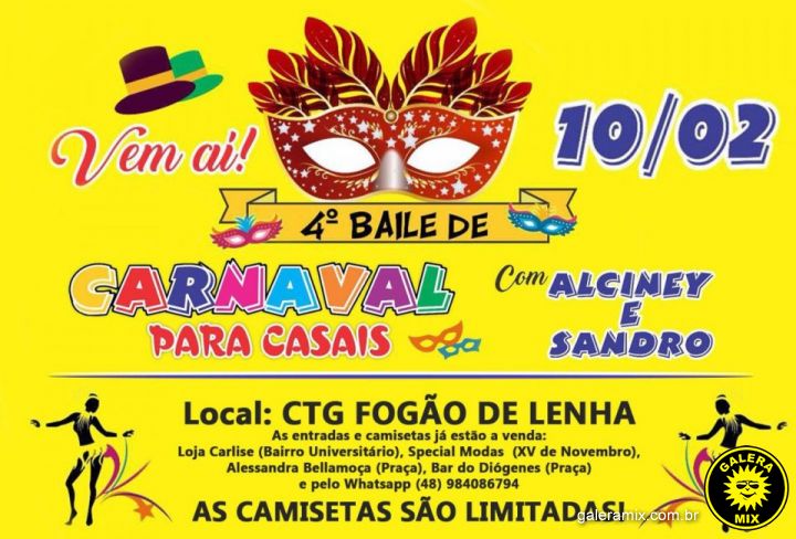 - 10 /02 - 4º Baile de Carnaval de Casais - CTG Fogão de Lenha;
