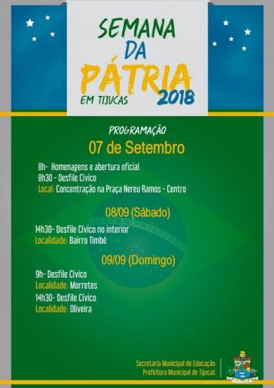 Na sexta-feira, 7 de setembro, acontece em Tijucas o tradicional desfile cívico em homenagem à Independência do Brasil. Escolas municipais, estaduais, particulares e entidades do município irão participar do evento que está marcado para começar às 8h na Praça Nereu Ramos.