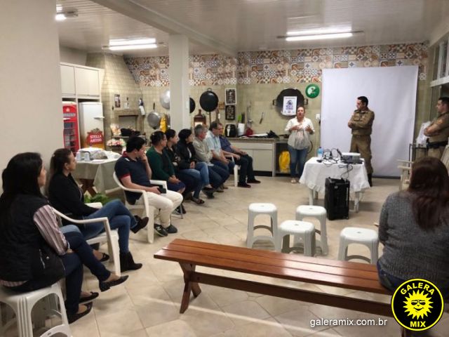 Apresentação da Rede de Vizinhos PMSC, exposição do levantamento de situação da localidade, esclarecimento do objeto, dos objetivos, da metodologia, dos benefícios, das dificuldades, dos riscos e da responsabilidade dos participantes.