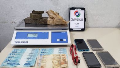 Na noite desta segunda-feira (10) quatro pessoas foram presas em uma ocorrência de tráfico de drogas. Entre os envolvidos estão uma mulher de 23 anos, um jovem de 22 e outro de 24, e ainda um idoso de 61. O flagrante ocorreu no bairro Alto São Bento, em Itapema.