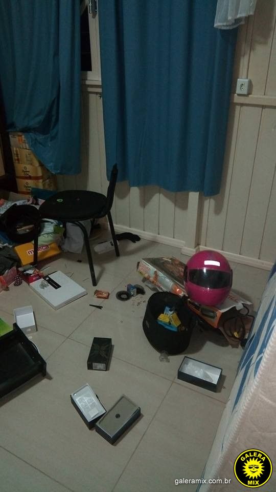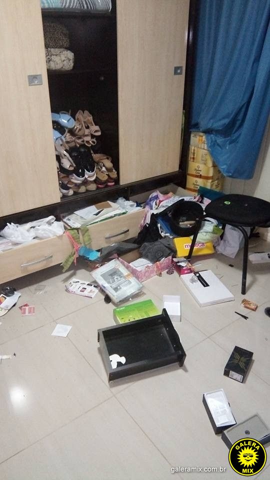 A proteção de uma das janelas foi parcialmente arrancada, por onde os ladrões entraram. Os meliantes fizeram uma grande bagunça dentro da casa, revirando armários e roupas.