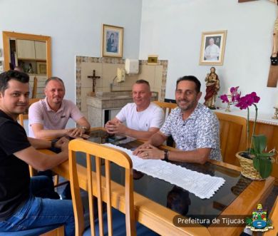 Na manhã desta quinta-feira (13), representantes da Administração Municipal de Tijucas estiveram reunidos com o pároco da Paróquia São Sebastião, padre Elizandro Scarsi, para buscar uma solução para a questão envolvendo o Estádio Manoel Franco de Camargo, o popular campo do Renascença.