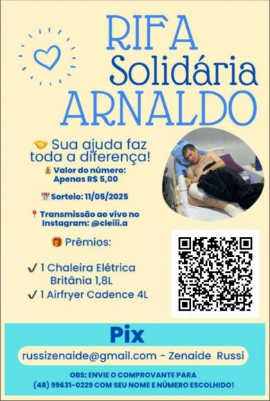 RIFA SOLIDÁRIA: para ajudar Arnaldo