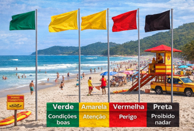 As bandeiras são instaladas diariamente pelos guarda-vidas e mudam de acordo com fatores como correntezas, ondas, vento e profundidade. Entender o significado de cada cor é fundamental para aproveitar o mar com segurança.