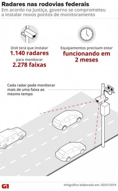 A validação foi feita entre o Departamento Nacional de Infraestrutura de Transportes (Dnit) e o Ministério Público Federal (MPF) para a instalação de 1.140 novos radares para monitorarem 2.278 faixas de rodovias federais não concedidas à iniciativa privada.