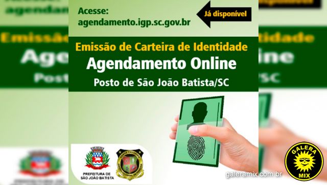Para realizar o agendamento, basta acessar o site agendamento.igp.sc.gov.br e seguir as orientações. No Posto de Identificação de São João Batista, que fica situado na Rua Marechal Floriano Peixoto, nº 124 (próximo à Delegacia Civil e ao Detran), são disponibilizados horários de segunda a sexta, das 8h às 12h e das 13h30 às 17h.
