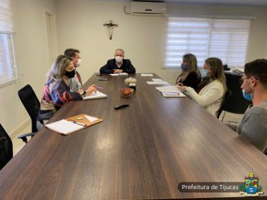 Em reunião no gabinete do prefeito Eloi Mariano Rocha nesta quarta-feira (07), o secretário de Saúde Vilson José Porcíncula e parte da equipe da secretaria de saúde discutiram procedimentos a serem adotados pelo município para reduzir o tempo de espera dos pacientes cadastrados para realização de exames.