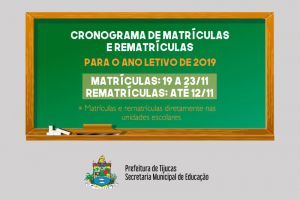 A Secretaria municipal de Educação de Tijucas realiza, entre os dias 19 e 23 de novembro, as matrículas de alunos para a Rede Municipal de Ensino. As matrículas são para alunos novos do Pré-escolar I e II e Ensino Fundamental I e II.