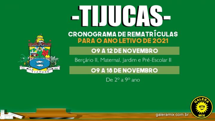 A Secretaria Municipal de Educação de Tijucas lançou nesta quinta-feira (05) o edital de rematrícula para alunos da Rede Municipal de Ensino. A rematrícula será realizada entre os dias 09 e 18 de novembro. Os pais ou responsáveis deverão comparecer na Unidade Escolar onde o filho (a) está matriculado, seguindo as datas do cronograma a seguir:
