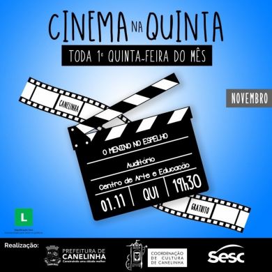A Coordenação de Cultura de Canelinha, em parceria com o Sesc Tijucas realiza nesta quinta-feira, 1º de novembro, o projeto “Cinema na Quinta”, às 19h30, no auditório do Centro de Arte e Educação. O filme exibido será "O Menino no Espelho", baseado no livro de Fernando Sabino, ambientado nos anos 30.