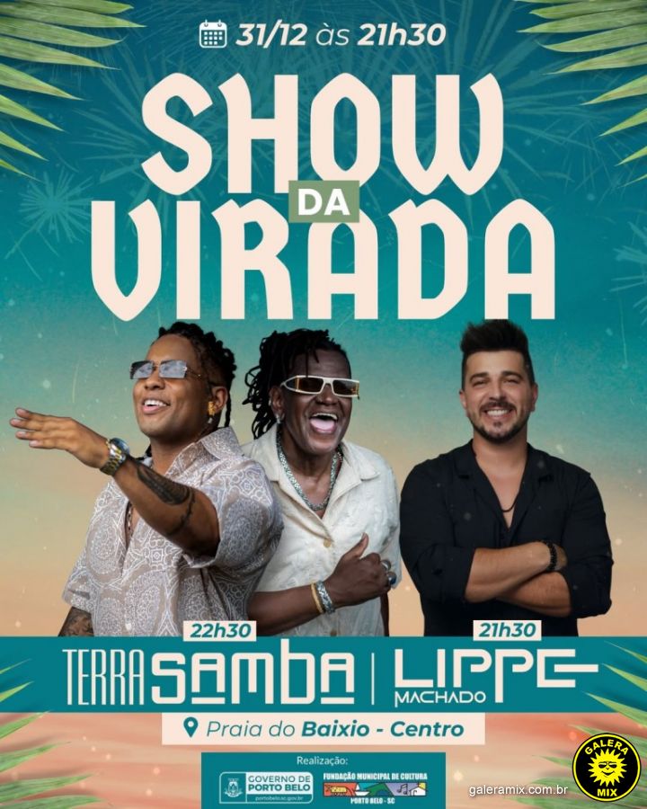 A programação inicia às 21h30 com o cantor regional Lipe Machado, que sobe ao palco para abrir a noite e valorizar os artistas locais. Em seguida, a partir das 22h30, a banda Terra Samba assume o comando do evento, levando ao público sucessos conhecidos e animando a contagem regressiva para o novo ano.