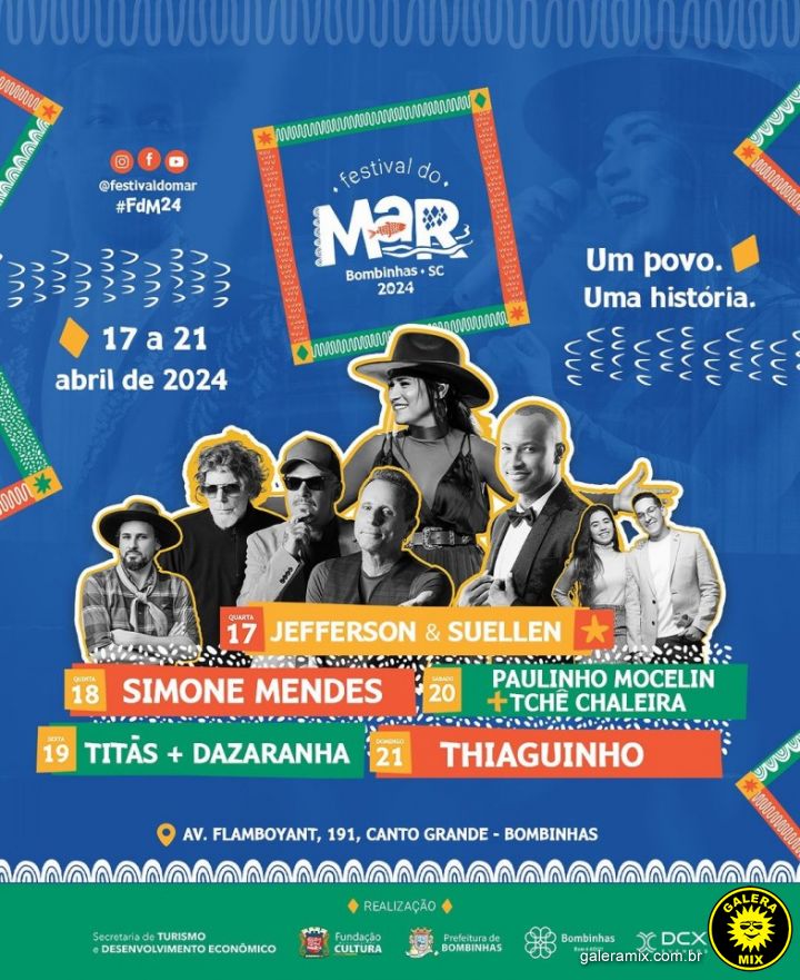 O aguardado Festival do Mar está de volta a Bombinhas, prometendo uma programação repleta de shows nacionais, atividades culturais, esportivas e gastronômicas. Com o tema "Um povo, uma história", o evento ocorrerá de 17 a 21 de abril e promete encantar moradores e visitantes.