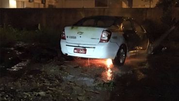O GM/Cobalt, placas MKI-0451, de cor branca, ficou parcialmente destruído pelas chamas, que foram controladas pelos bombeiros.
