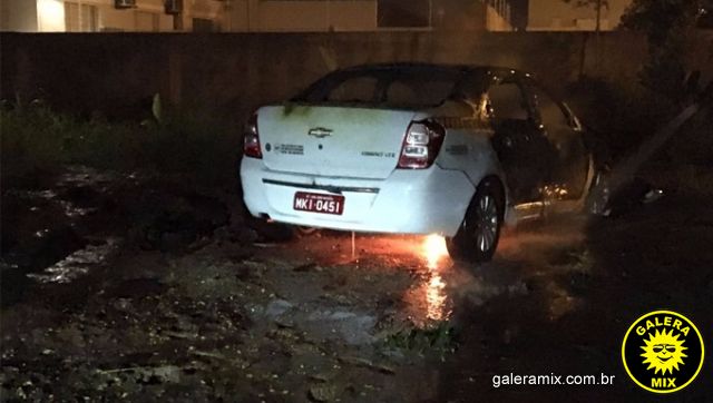 O automóvel foi abandonado e incendiado no residencial Benatti, localizado na avenida Emilia Ramos, popular P4, em Tijucas.