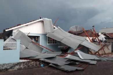 Um dos mais assustadores casos ocorreu na rua Araci Duarte Scherem no bairro Carmelo de Fora, onde pelo menos três residências ficaram parcialmente destruídas após parte da cobertura de um prédio se desprender com o vento e atingir as casas.