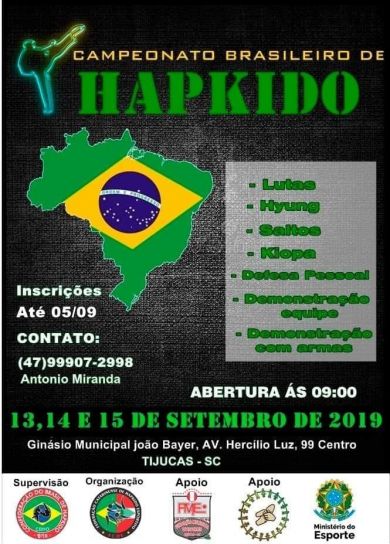 Tijucas vai ser representada por 45 crianças e adolescentes. Os atletas estarão disputando vagas para a seletiva do Campeonato Sul-americano, que será disputado no mês de novembro, em Porto Alegre (RS). O aprendizado de defesa pessoal através do Hapkido se dá com a utilização de técnicas de socos, chutes, rolamentos, escapes, esquivas, torções, alongamento e respiração.