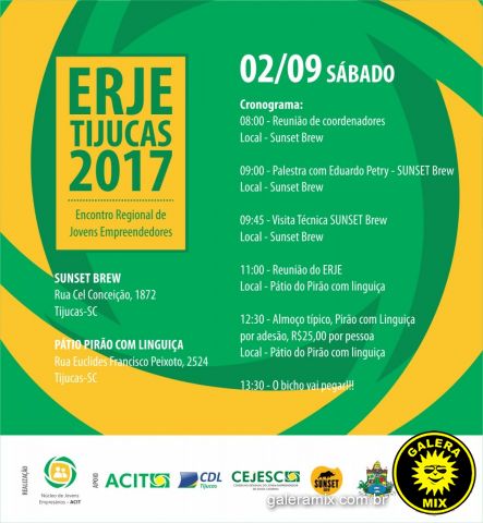 Além do CEJESC, ACIT e CDL, também são parceiros do evento: Prefeitura de Tijucas, Sunset Brew Cervejaria e Sesc.