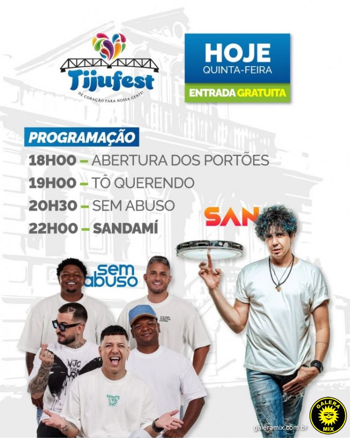 O grande dia chegou! A Tijufest 2025 começa nesta quinta-feira, 20 de novembro, os portões serão abertos às 18h, no Casarão Gallotti, no Centro de Tijucas. A programação segue até domingo, 23 de novembro, com uma variedade de atrações musicais que prometem agradar todos os públicos e reunir visitantes de várias regiões.