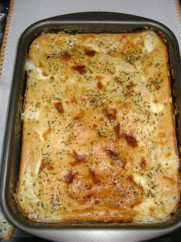 Por cima despeje a cobertura que foi batida no liquidificador e polvilhe com o parmesão ralado