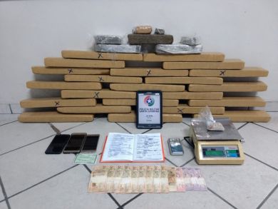 Em diligências realizadas pelos policiais militares em Biguaçu, em desdobramento do tráfico em Tijucas, restaram apreendidos: