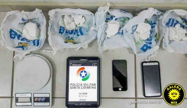 Os policiais decidiram abordar os suspeitos no momento em que um indivíduo parou com um VW/Gol vermelho em frente à residência investigada. O motorista do carro, A.B.M, de 27 anos, conhecido traficante de Itapema, estava entregando 510g de cocaína para o proprietário da casa, o traficante identificado apenas como A.B.S.A, de 25 anos. Na residência também foi encontrado uma balança de precisão.