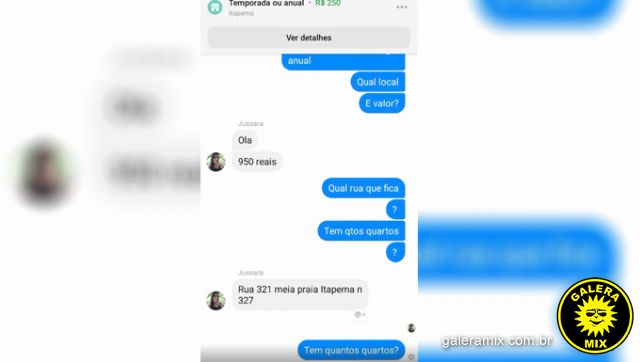Ela oferece casas e apartamentos já alugados ou que simplesmente não existem. Ao interesse do turista, a pessoa pede uma transferência bancária antecipada, a fim de garantir a “reserva”.