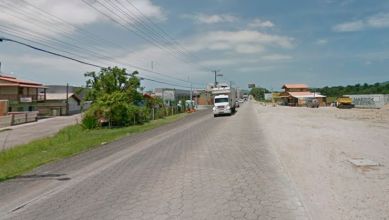 Um veículo Fiat/Uno pegou fogo na Rodovia SC 412 em frente a uma loja de calçados, no bairro Perequê em Porto Belo.