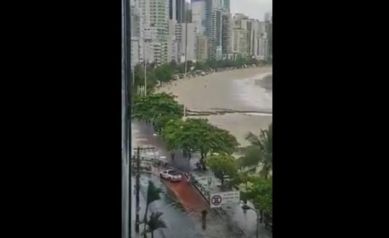 O temporal registrado durante a madrugada deste domingo (28), deixou a Avenida Atlântica, em Balneário Camboriú, alagada. Um morador fez imagens do local pela manhã. É possível ver os carros até retornando para evitar transitar pela avenida. A chuva forte também provocou alagamentos em outros pontos da cidade.